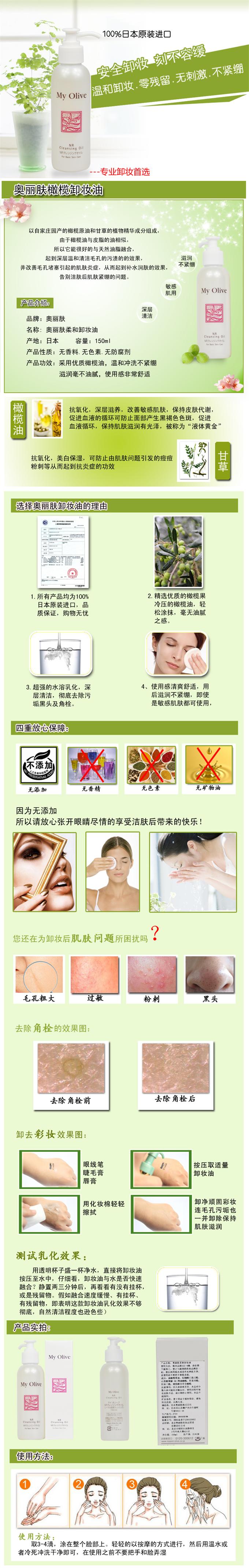 成分:青橄榄果汁、橄榄油、N、M、F天然保湿因子 功效:配有橄榄油成份的可用水清洗的卸妆产品。能有效溶解化妆物及污脂,而不破坏皮肤天然的弱酸性保护膜。 使用方法将本品挤出2-4滴,涂在整个面部上,使之与面部的化妆品溶在一起, 然后再用温水或者冷水冲洗干净,在使用前不要把手和脸弄湿。 规格类型:正常规格 适合肤质:任何肤质