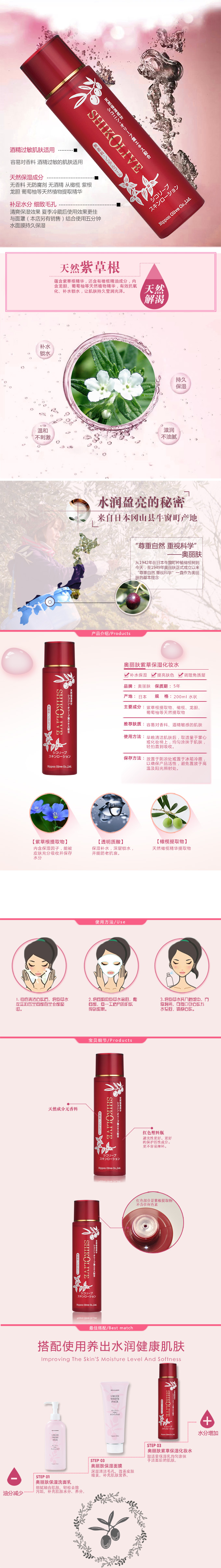 成分:紫根提取物、橄榄叶、透明质酸 简介: 本品可防止肌肤粗糙、收缩毛孔,抑制痘痘和粉刺的生成,在轻松补水的同时,更能改善肌肤问题,调整肌理,推荐用作水膜。本品無香料・無着色・無防腐剂。(本品颜色为紫草颜色,不含色素请放心使用) 使用方法: 用于在化妆水之后,取适量涂抹于面部或全身! 规格:正常规格 适合肤质:任何肤质